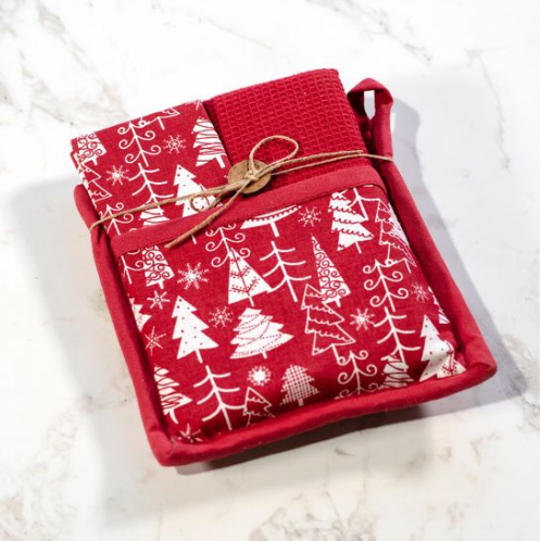 Red Christmas Tree Potholder Set